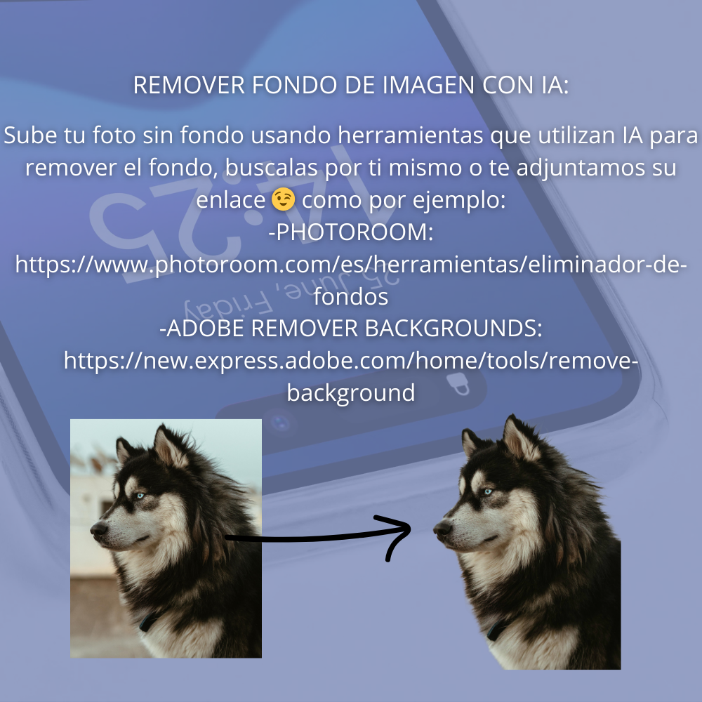 Para poder conseguir tu mascota sin ningún fondo de imagen, webs como "adobe remove backgrounds" web encargada de quitar el fondo de la imagen sin necesidad de edición.